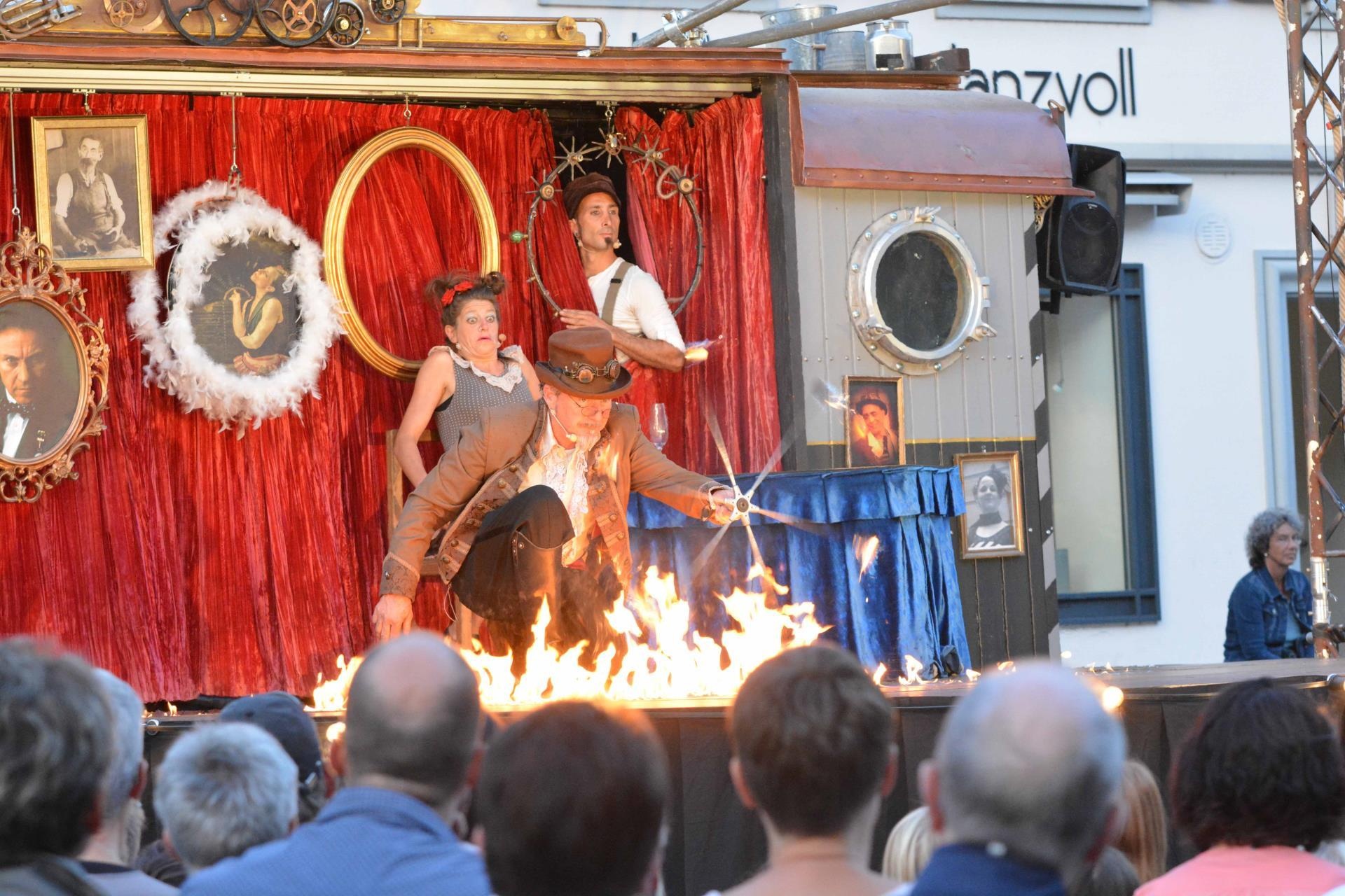 Am Wochenende gastierte das Variété Pavé in der Surseer Oberstadt beim Marienbrunnen. Die drei Künstler vermochten das zahlreiche Publikum mit Akrobatik, Zauberei, Feuerspektakel und vielem mehr in ihren Bann zu ziehen.