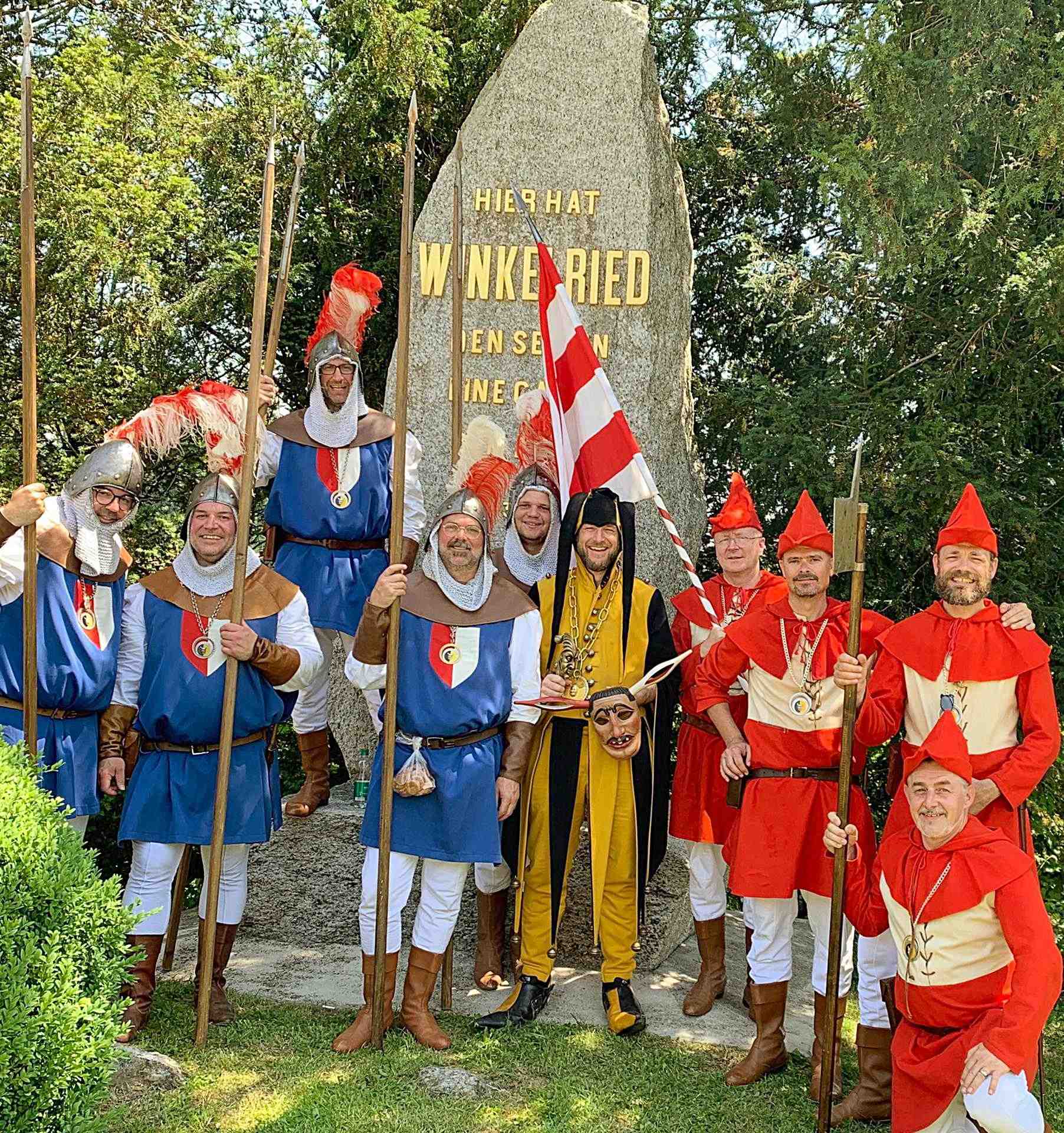 Traditionell besuchen der Heinivater und die Stadtgarde von Sursee das Winkelried-Denkmal anlässlich der Gedenkfeier. (Foto zvg)