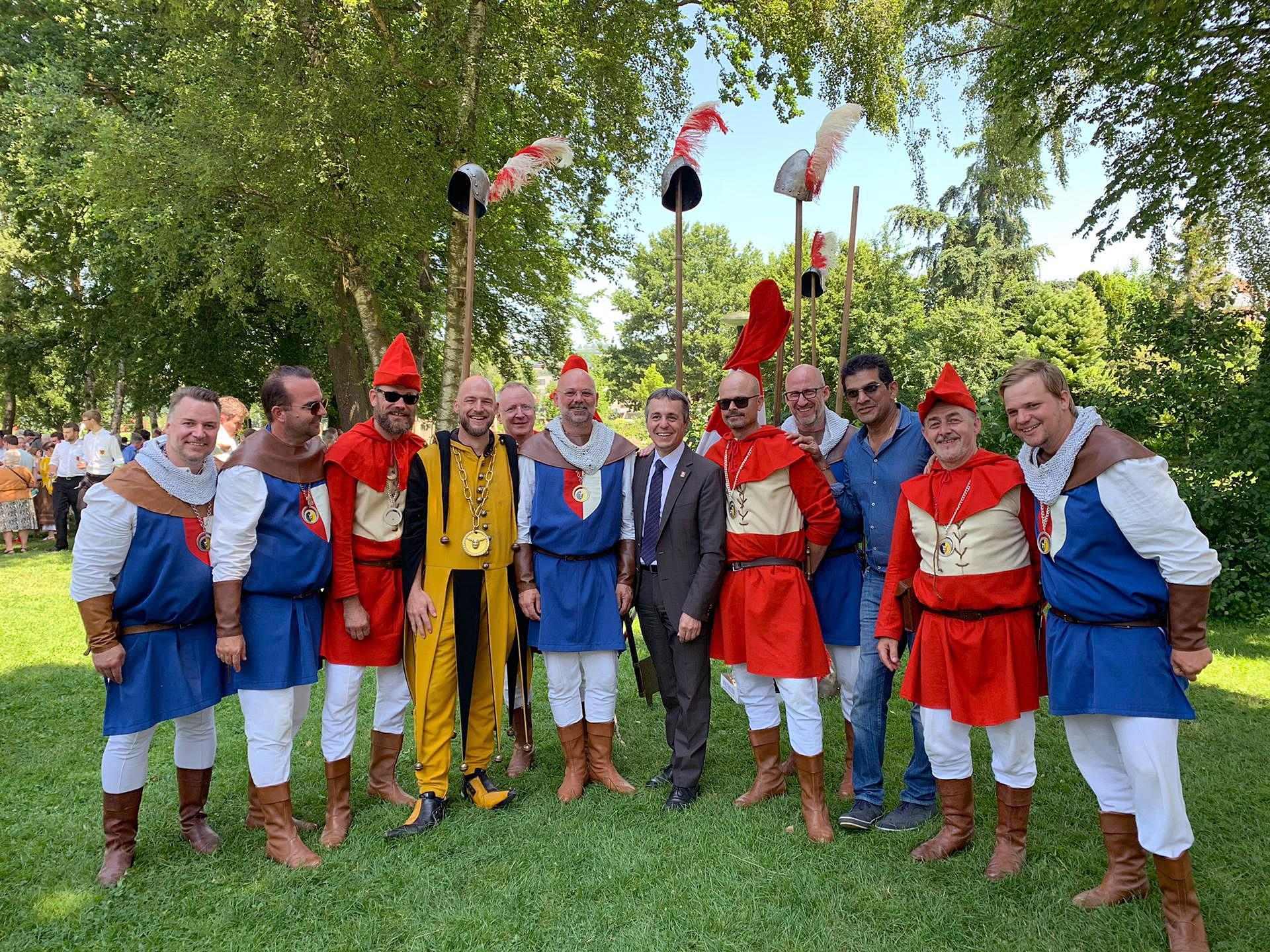 Auch in diesem Jahr startete die Delegation morgens um 6 Uhr auf dem Seeweg nach Sempach. Beim offiziellen Apéro erhielten die Surseer sogar Besuch von Ehrengast Bundesrat Ignazio Cassis. Traditionell lief die Stadtgarde mit dem Heinivater Rico Löhrer trotz grosser Hitze hinauf zum Winkelried-Denkmal, um den Gefallenen zu gedenken.