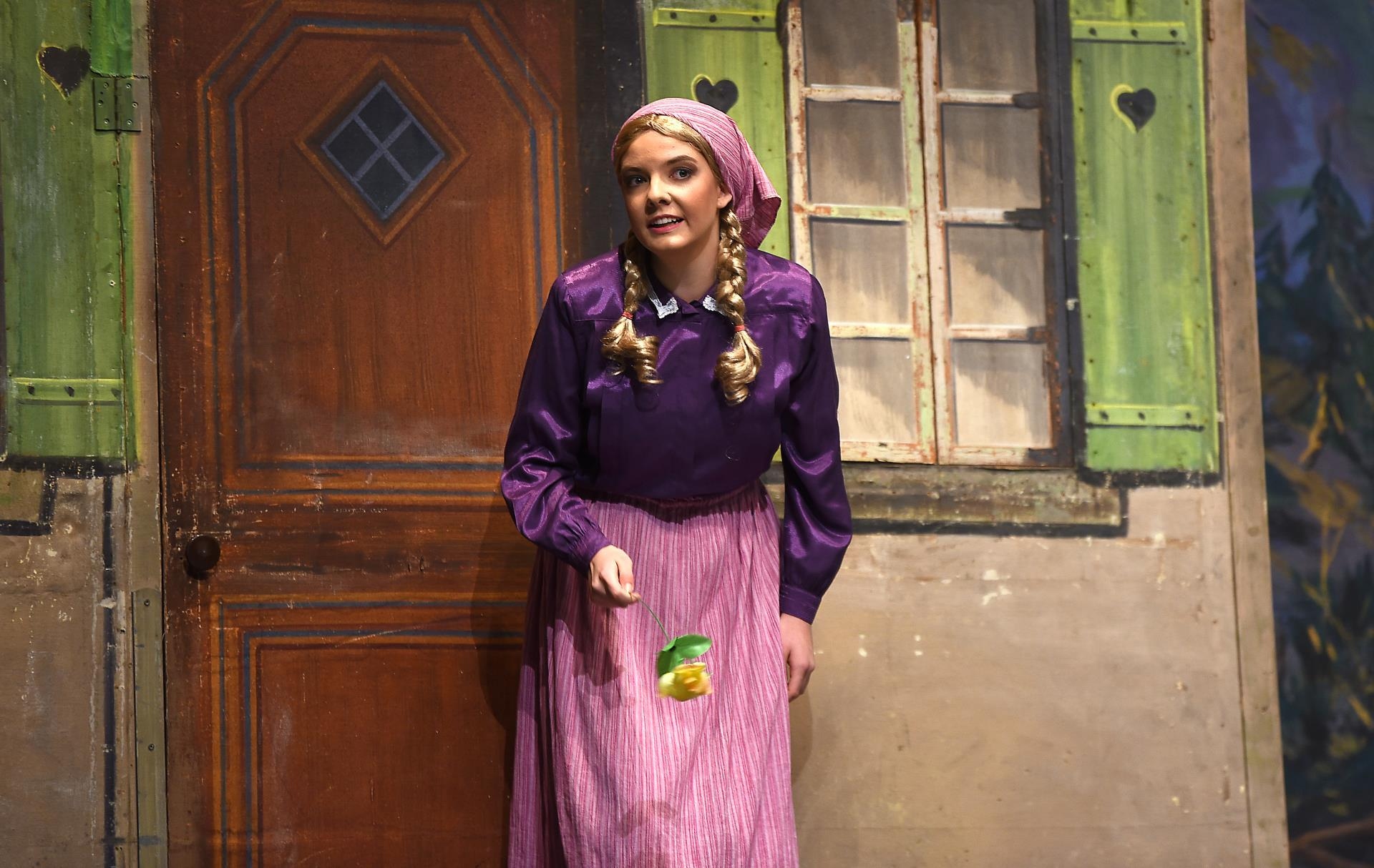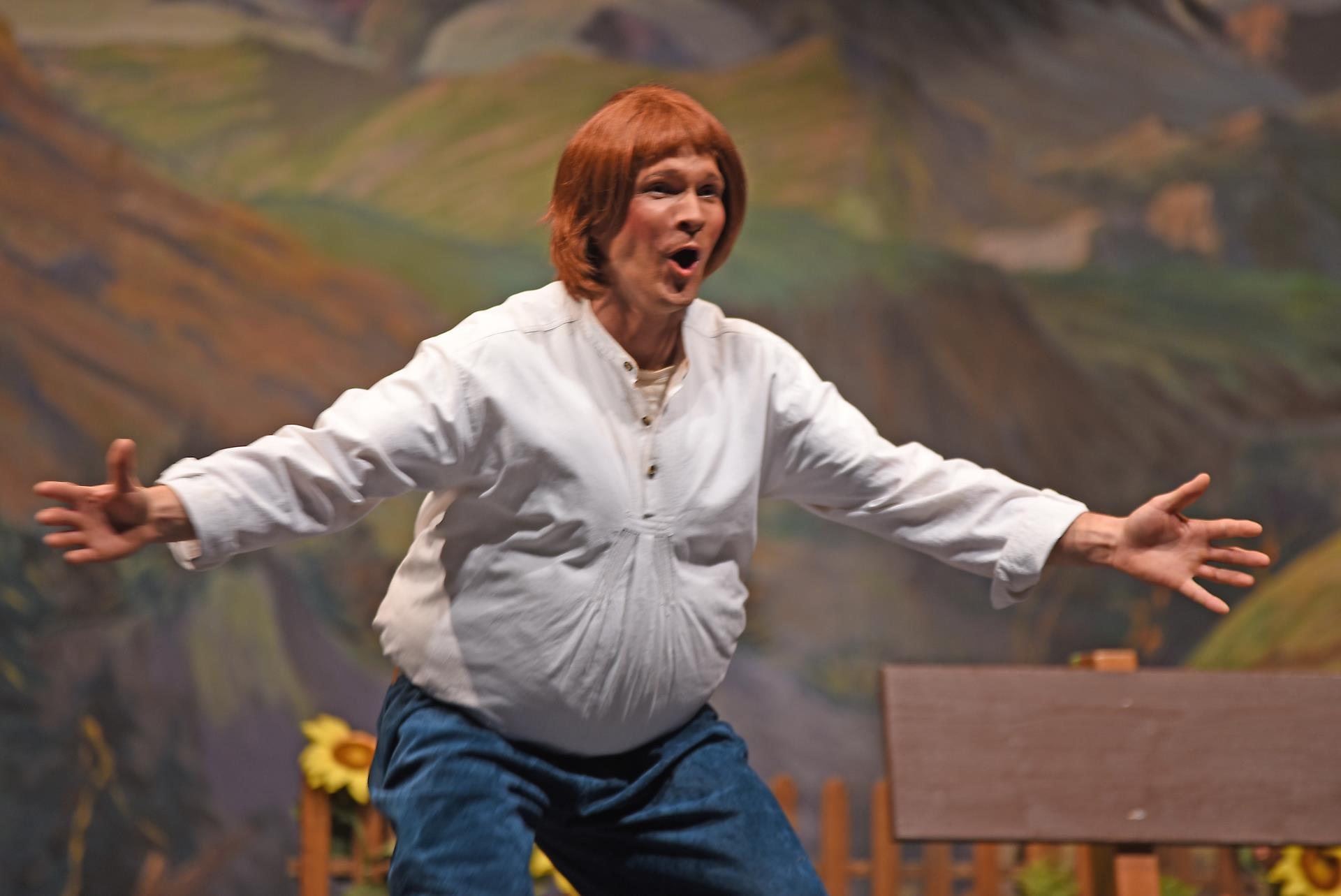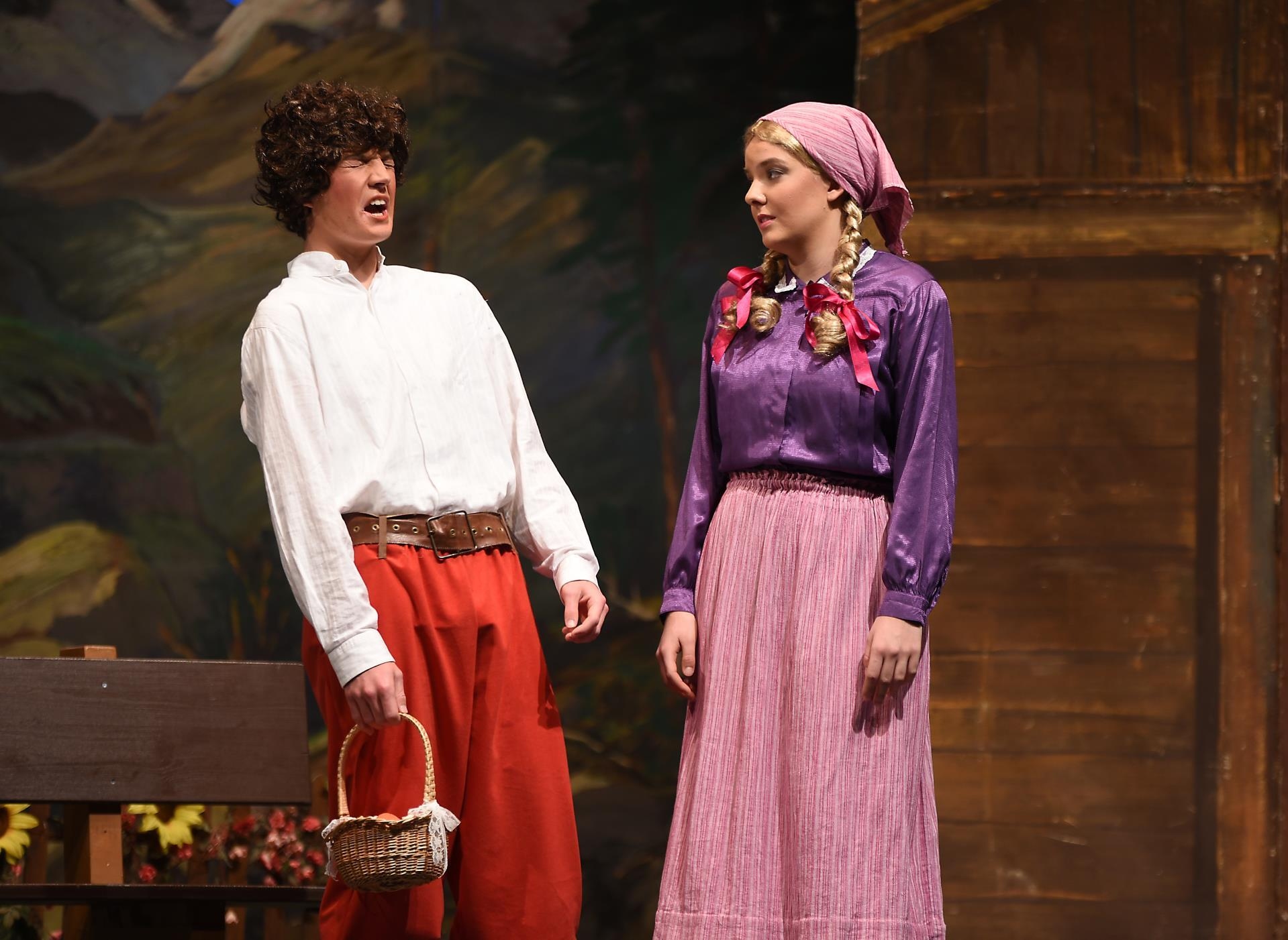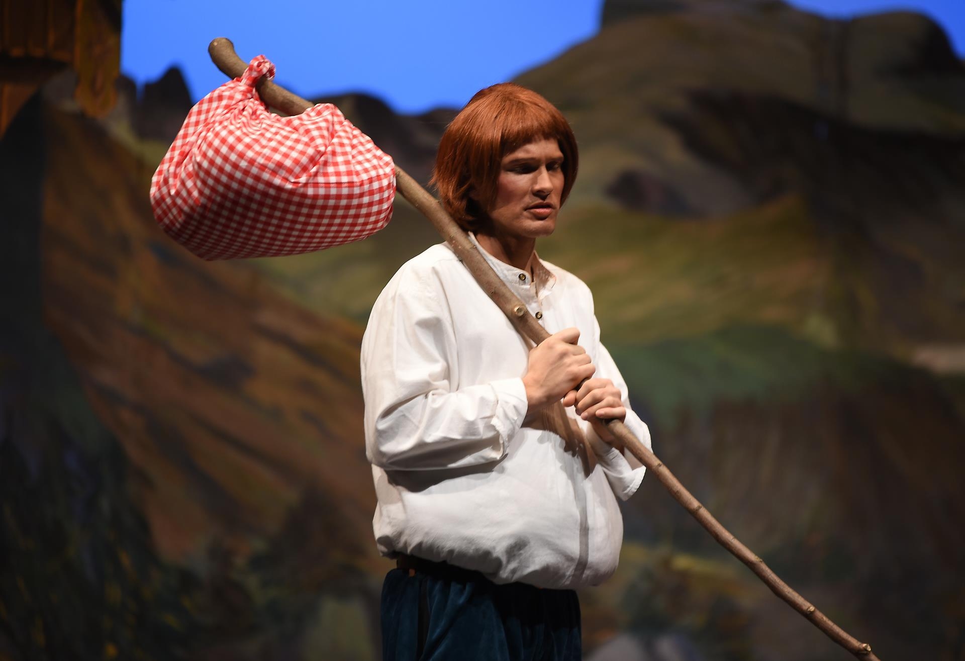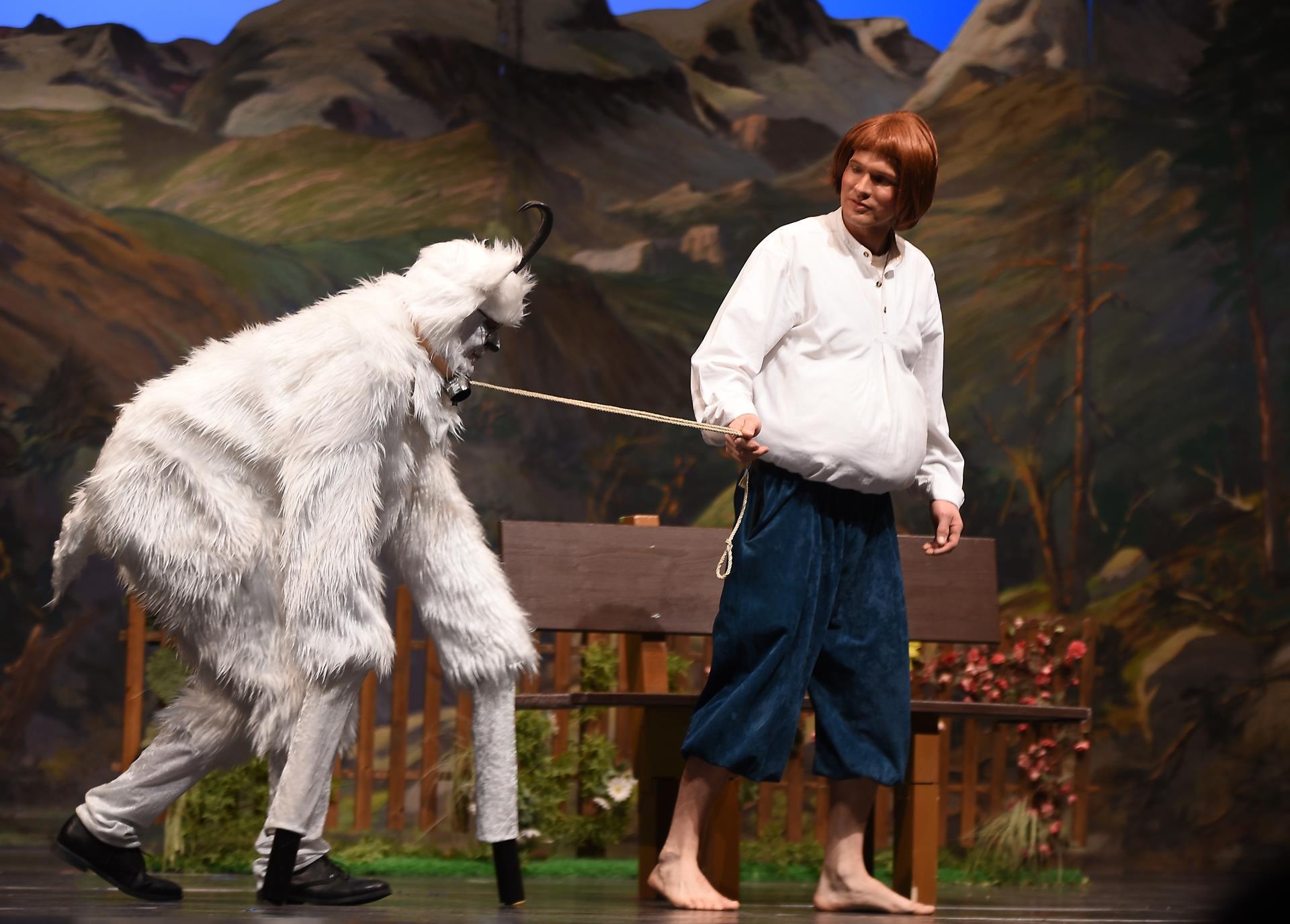 Schneidermeister Nädeli (Nico Negri) und Rägeli (Lin Arnold) treten zuerst auf die Bühne. Sie sprechen über die gesammelten Erdbeeren. Die drei Brüder Fritz (Pascal Küng), Franz (Daniel Heggendorn) und Florian (Jan Lauber) hören mit und stibitzen die süssen Früchte. Auf der Bühne singen Rägeli, Franz und Florian «Det äne am Bärgli, det stoht ä wysi Geiss». Alle im Forum Triengen singen mit. Frau Bohnenbluest (Ursula Koch) taucht ebenfalls erstmals auf.