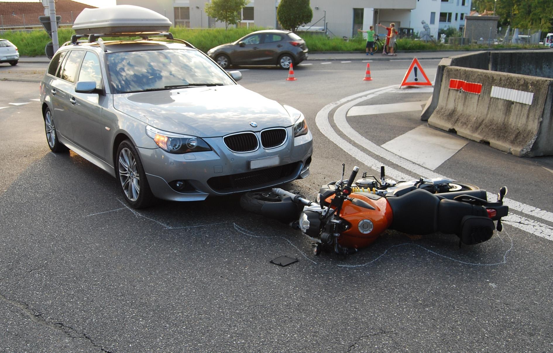 Im Kreisel vor der Autobahn missachtete ein Autofahrer eine Motorradfahrerin – sie kam zu Fall und musste ins Spital. Der Autolenker war alkoholisiert.