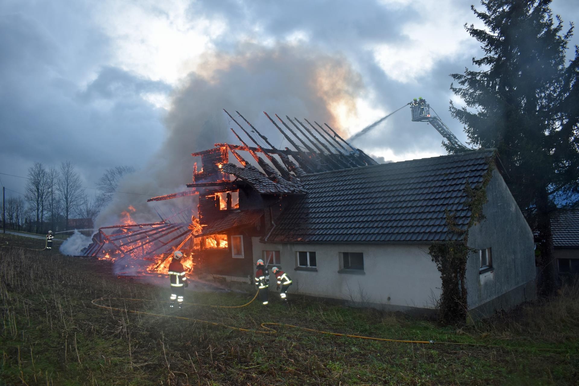 Unbewohntes Bauernhaus wird ein Raub der Flammen