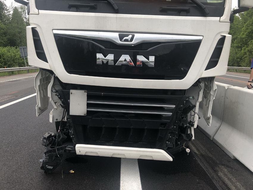 Um 7.10 Uhr ereignete sich auf der Autobahn A2 in Sursee ein Selbstunfall eines Sattelmotorfahrzeugs. Der Chauffeur geriet mit seinem Fahrzeug aus noch ungeklärten Gründen nach rechts und kollidierte mit der Leitplanke. Anschliessend querte das Fahrzeug die Fahrbahn und prallte gegen die Betonelemente, die zur Fahrbahntrennung platziert sind.