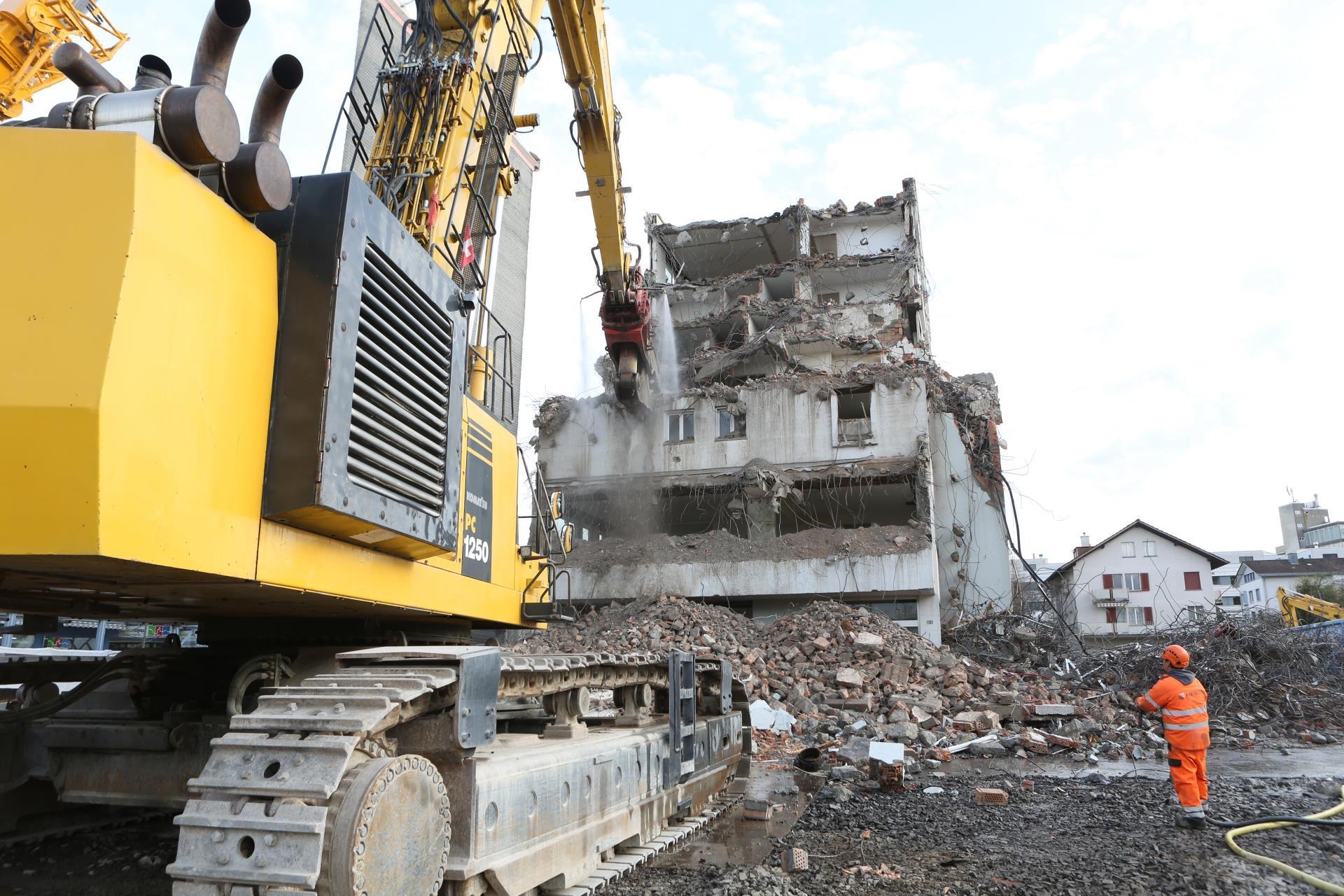 Am Dienstag begannen auf dem ehemaligen Areal der Auto Wyder AG in Sursee die Abbrucharbeiten des ehemaligen Denner-Gebäudes. Läuft alles glatt, ist der dem Abbruch geweihte Bau bereits in zwei Wochen dem Erdboden gleichgemacht.