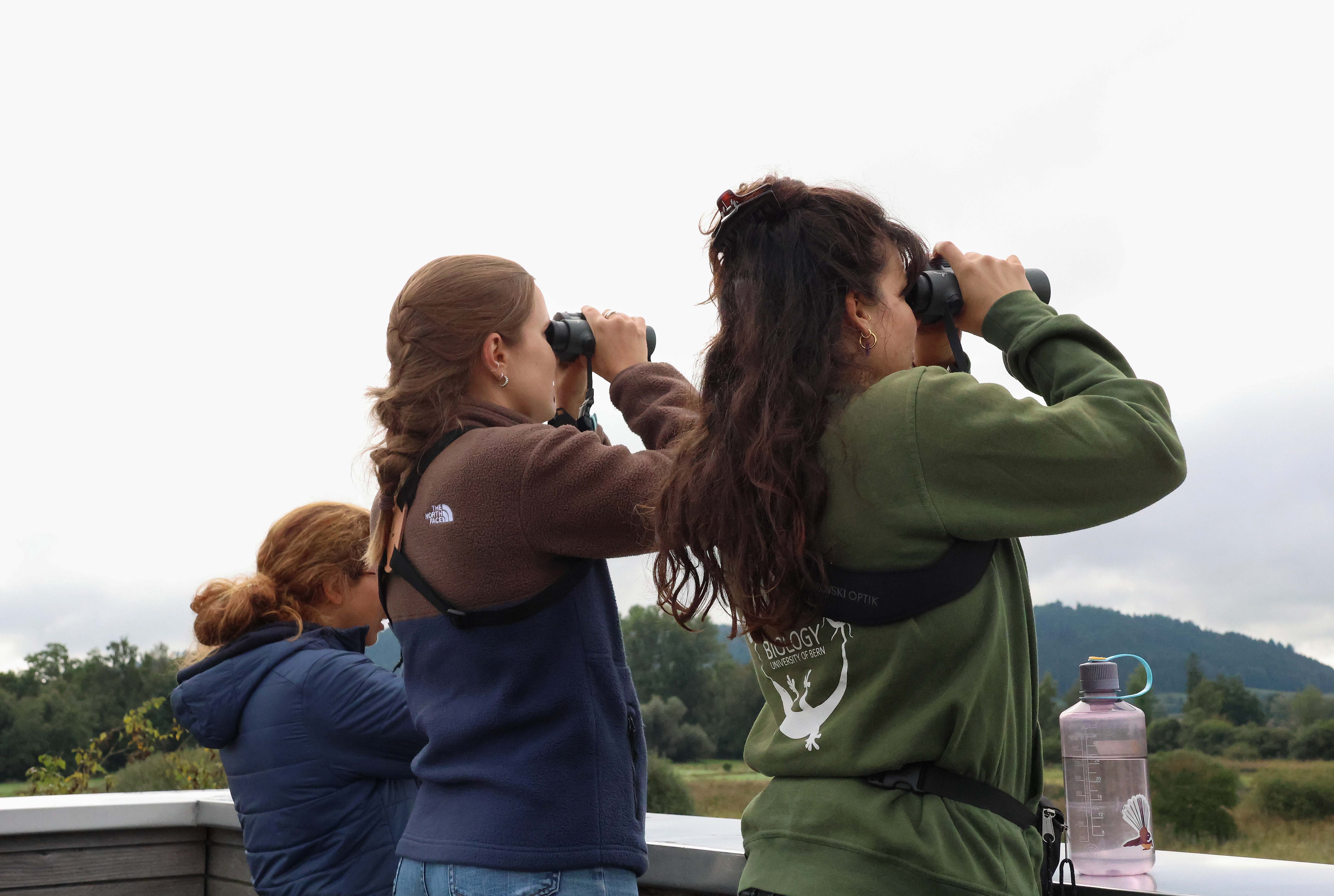 Trotz der vielen Beobachtungsstationen gestaltete sich der Tag für die Ornithologinnen recht ruhig. Nicht, weil sie keine Vögel sahen, sondern weil sie sehr viele sahen. Wer Vögel von Nahem beobachtet, muss leise sein, sollte sich nicht ruckartig bewegen, ansonsten könnten sie schnell ausser Sichtweite fliegen. Dennoch muss ab und zu diskutiert werden. Welcher Vogel singt so hoch? War es eine Amsel oder doch eine Kohlmeise?