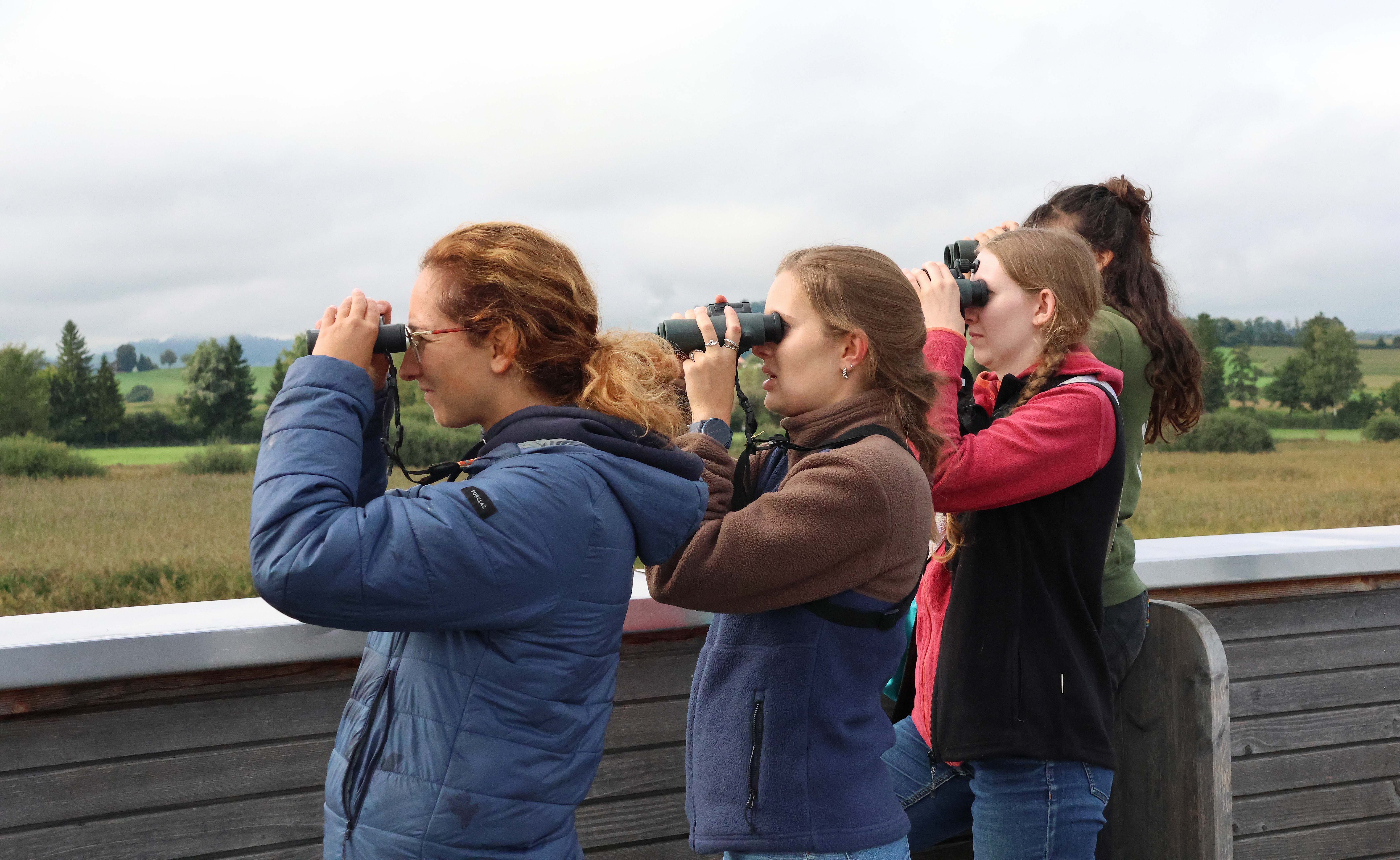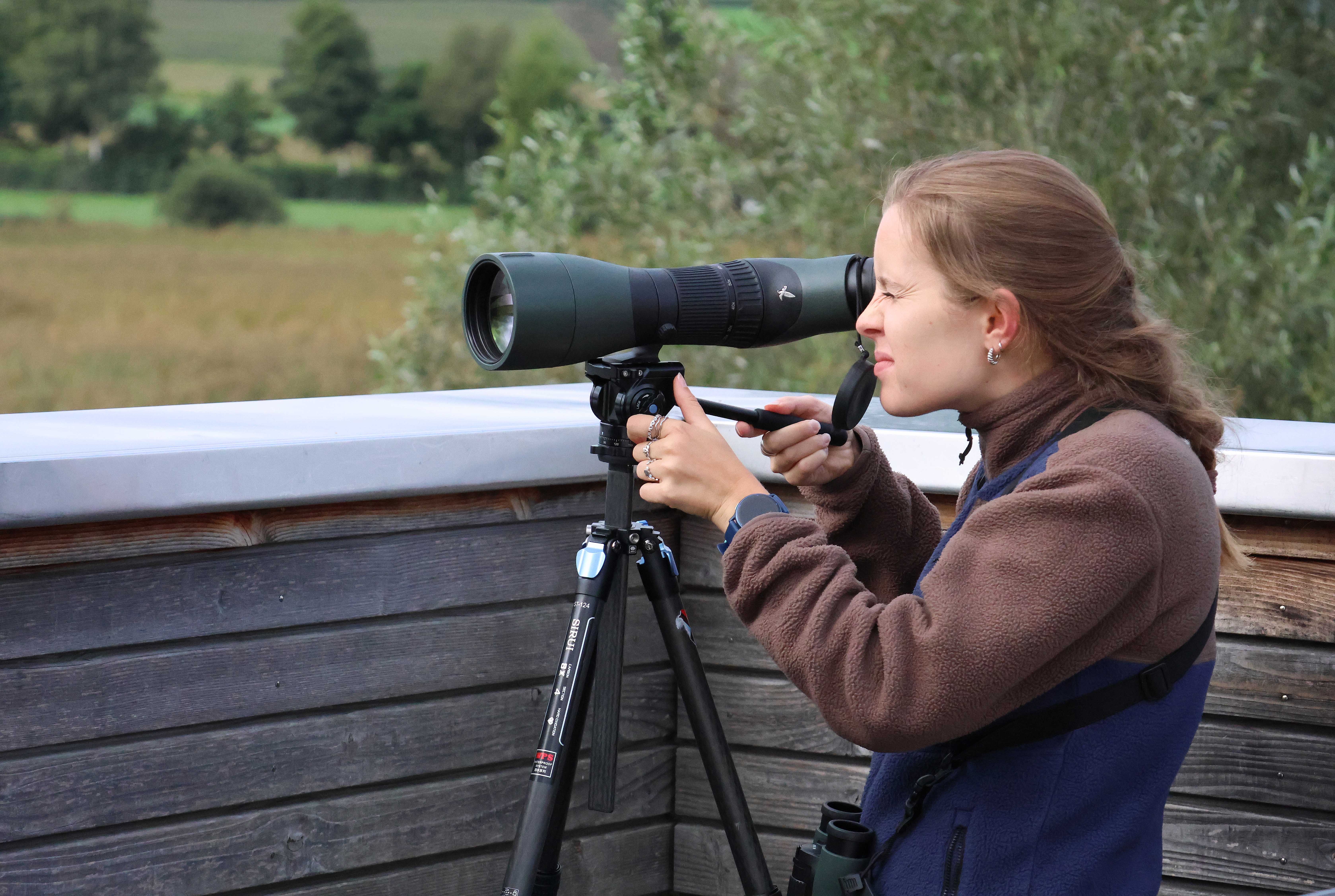 Erfahrene Ornithologinnen haben nicht nur den Feldstecher dabei, sondern auch das Fernrohr.