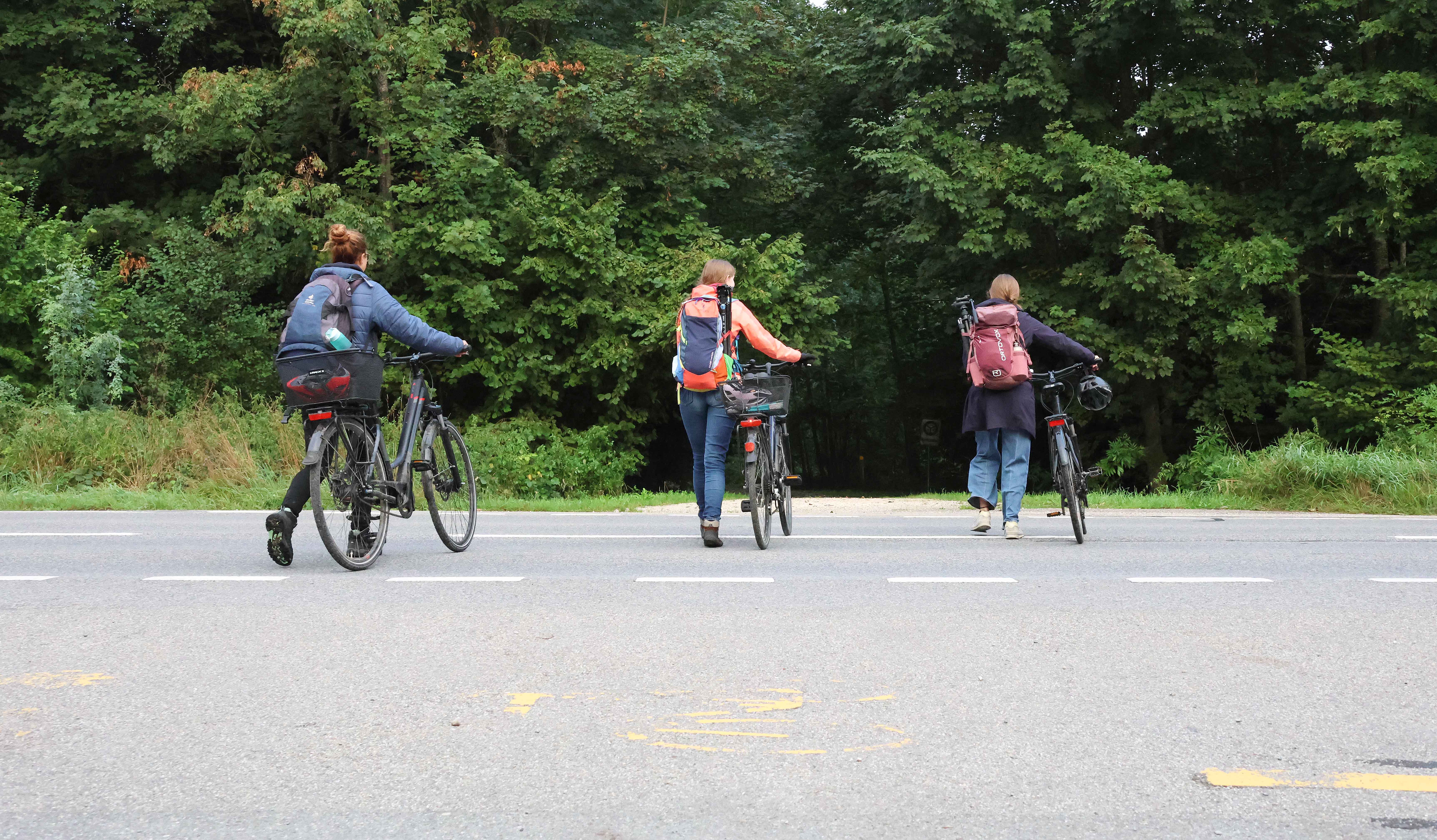Die Gruppe «Spechtakulär», die am diesjährigen «Bird Race» mitgemacht hat, überquert die Strasse in Richtung Surseer Wald.
