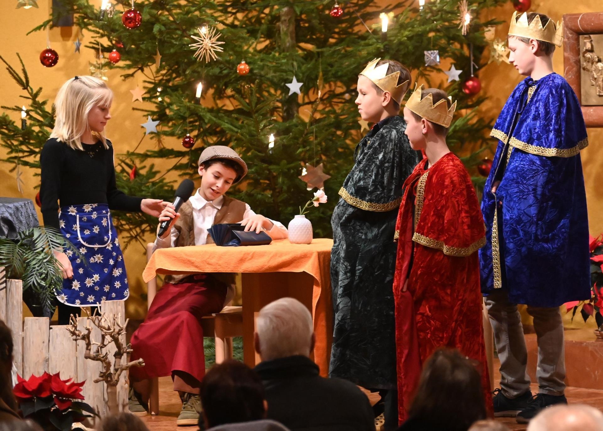 Mit einem spannenden Weihnachtsspiel eröffneten die Mädchen und Knaben der fünften und sechsten Klasse Schenkon den Familiengottesdienst. Beni Ben Baitz führt mit seiner Tochter Hannah in der Nähe von Bethlehem ein kleines Beizli. Der Ertrag ist karg, aber es reicht für die Familie. Die angekündigte Volkszählung der Römer kommt Beni gelegen, und er hofft, dass viele Menschen, die unterwegs sind, in seinem Beizli einkehren. Tatsächlich erscheinen Gäste, so eine Frau und ein Mann, die aber eine Herberge suchen. Beni schickt sie weiter, und bald darauf hört Hannah himmlische Klänge. Die Engel des Beginners-Chors der Musikschule Region Sursee singen auf der Empore weihnächtliche Lieder. Da im Beizli die Gäste fernbleiben, machen sich auch Beni und Tochter Hannah auf den Weg. Bald finden sie, wie die Hirten und Könige, in einem Stall das neu geborene Jesuskind.
