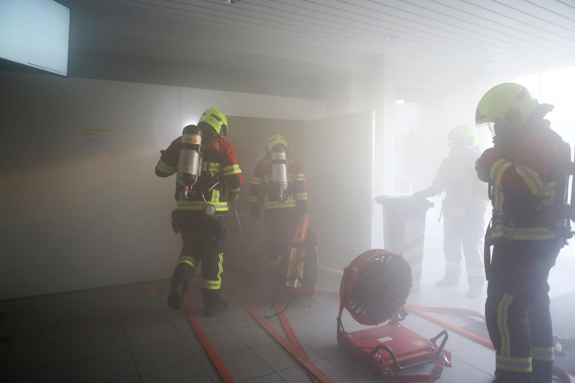 Alle Eingeteilten der Feuerwehr Region Sursee hören um 18.30 Uhr den Alarm. 80 von ihnen eilen zur Kanti, wo sie 24 Personen retten und einen Brand…