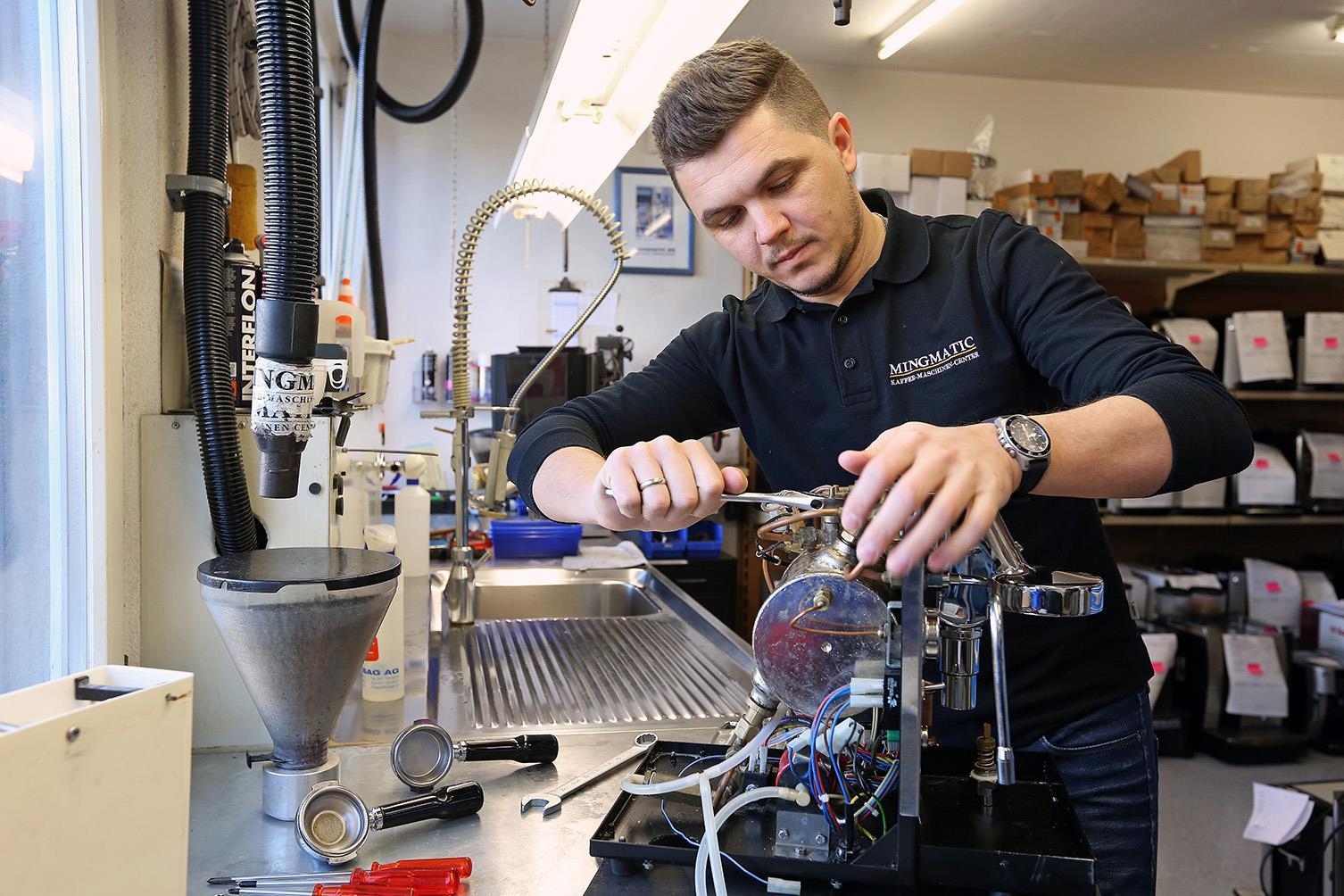Die Reparatur und Revision von Kaffeemaschinen benötigt Fingerspitzengefühl und handwerkliches Geschick.