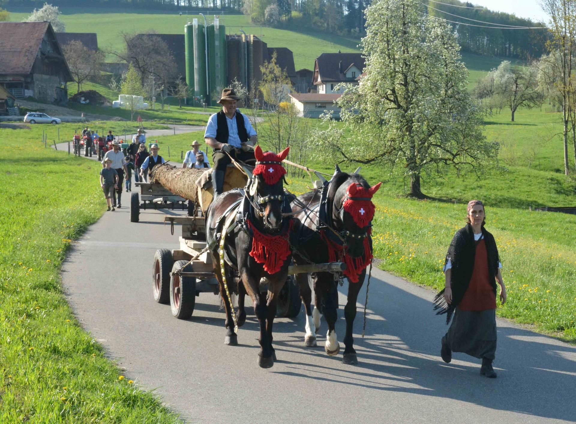 Am Samstag haben die Freunde nostalgischer Landarbeiter einen Baumstamm von Wellnau über Triengen nach Attelwil in die Sagerei transportiert. Mit zwei Pferden (Moritzburger) schafften sie das. Hoch auf dem Stamm oben sass Beat Huber, der Präsident des Vereins. Sehen Sie auch die Bilderstrecke.