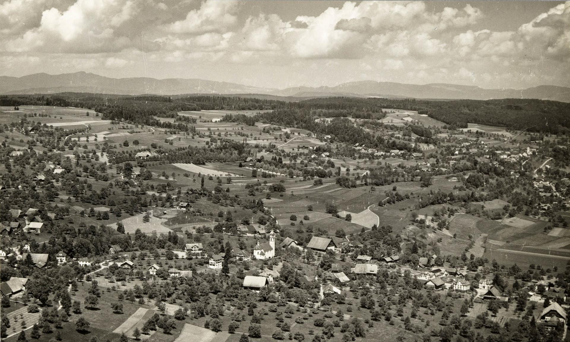 Diese Luftaufnahme eines unbekannten Fotografen zeigt Winikon in den 1930er-Jahren. Wie auch bei Luftaufnahmen anderer Surentaler Gemeinden fällt vor allem eines auf: Einige wenige Häuser und ganz viele Bäume.