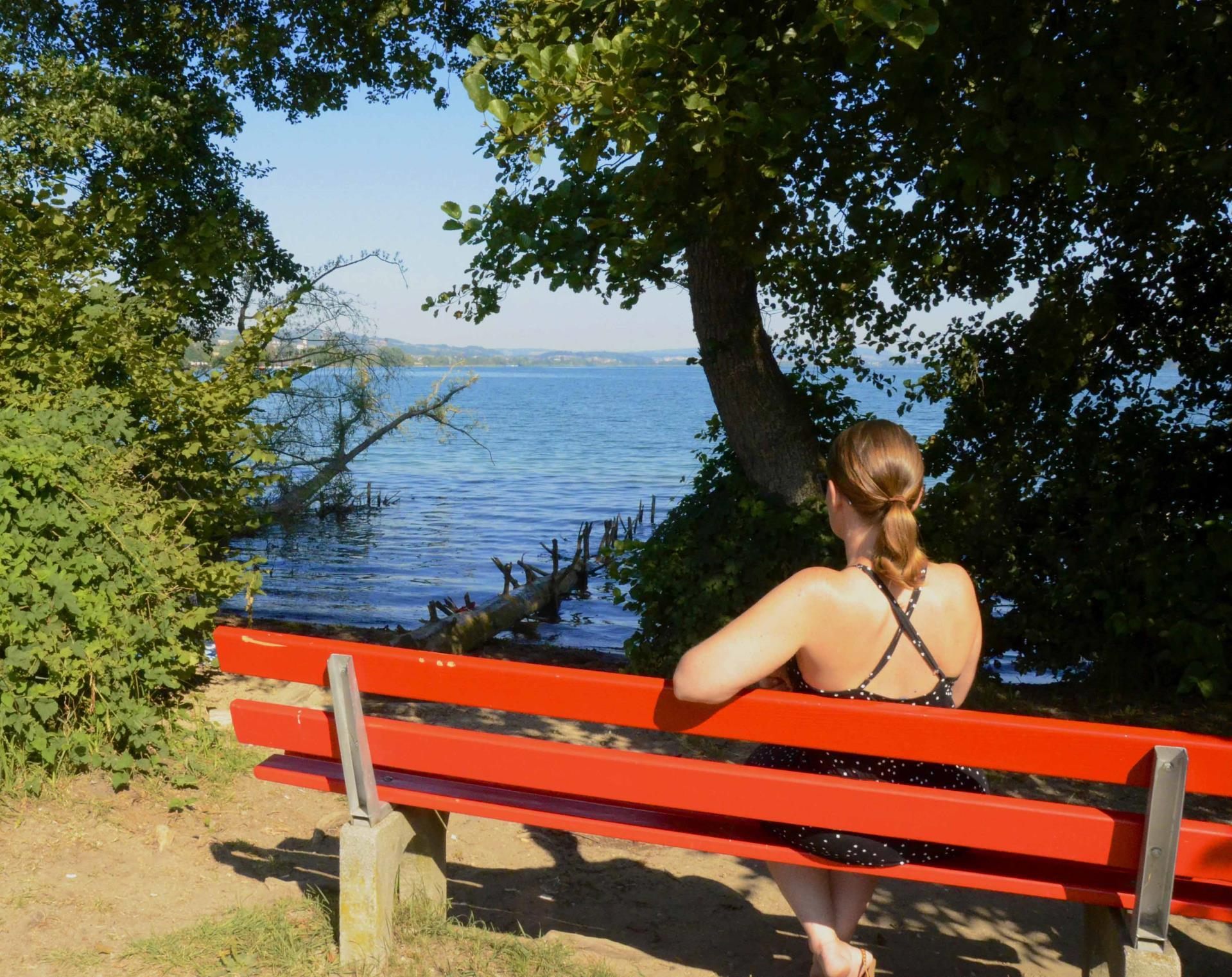 Tagsüber wird man Zeuge eines harmonischen Zusammenseins zwischen Mensch und Tier, an lauen Sommerabenden lockt sie Schaulustige und Romantiker gleichermassen zum Betrachten des Sonnenuntergangs an: Die Rossbadi in Sempach ist zwar – vor allem in der warmen Jahreszeit – ein viel besuchtes Fleckchen, verliert deswegen meines Erachtens jedoch kein bisschen von ihrem Charme. Das Bänkli direkt am See ist nicht nur ein perfekter Rastplatz während einer Velotour um den See, sondern lädt auch zum Tagträumen ein. Gerne ziehe ich mich dort alleine zurück, um nachzudenken oder einfach um die Aussicht zu geniessen.
