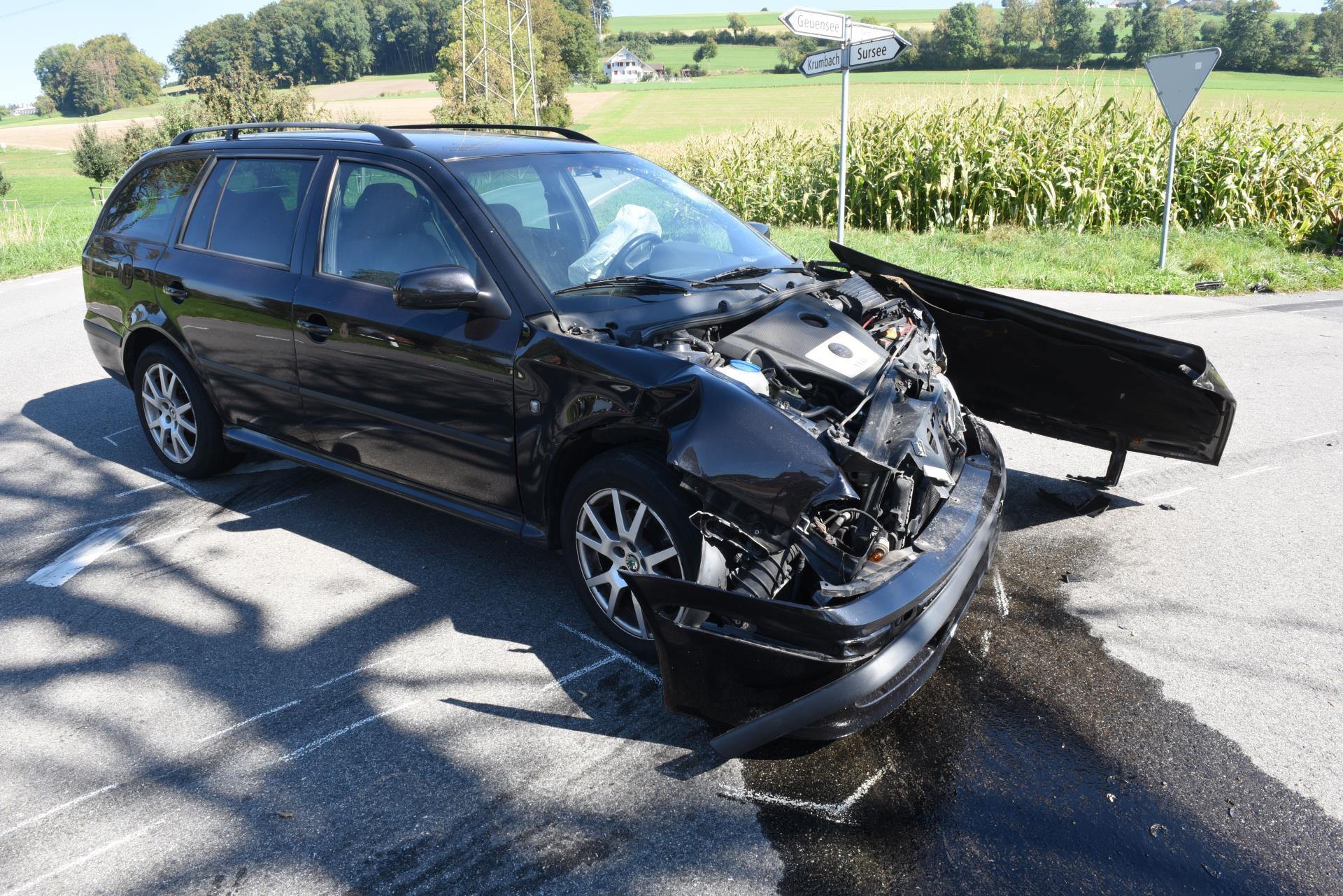 Am Freitag, 28. September, kurz nach 11.30 Uhr, fuhr ein Autofahrer auf der Krumbacherstrasse von Geuensee her Richtung Zopfenberg. Bei der Einmündung in die Kehrhaldestrasse ist es zu einer Kollision mit einem von rechts herannahenden Personenwagen gekommen. Eine Person verletzte sich dabei leicht und wurde mit dem Rettungsdienst 144 ins Spital gefahren. Eine Person erlitt einen Schock und wurde vor Ort behandelt.
