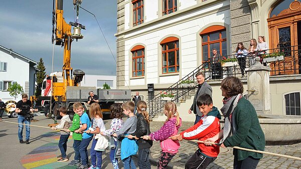 Triengen: Kinder zogen Glocke ins Türmchen des renovierten Dorfschulhauses hoch